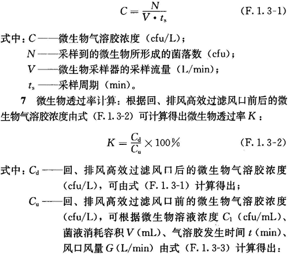 4 采樣:對于回、排風(fēng)高效過濾風(fēng)口,可在其后的出風(fēng)管道中采樣,離排風(fēng)高效過濾風(fēng)門的距離根據(jù)實際工程而定,原則上出風(fēng)后有所混合,能近則好,采樣點沿風(fēng)管寬度方向均勻布置3點。采樣周期、采樣次數(shù)按預(yù)先制定的評價方案執(zhí)行。采樣過程中,不能中斷微生物氣溶膠的發(fā)生,采樣結(jié)束后才能停止發(fā)生微生物氣溶膠,此后噴霧器中必須尚存不少于一半的微生物溶液,且需對剩余菌液活性進(jìn)行涂布法驗證,以修正菌液濃度。