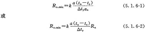 5.1.6 除外窗、陽臺門和天窗外,設置全面供暖的建筑物,其圍護結(jié)構(gòu)的最小傳熱阻不得小于按下列公式計算所得值: