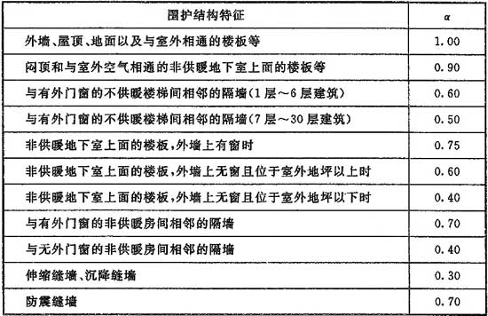α——圍護結(jié)構(gòu)溫差修正系數(shù),按本規(guī)范表5.1.6-3采用;