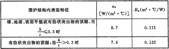 表5.1.6-5 內(nèi)表面換熱系數(shù)αn和換熱阻值Rn