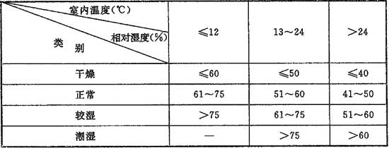 注:1 室內(nèi)空氣干濕程度的區(qū)分應根據(jù)室內(nèi)溫度和相對濕度按表5.1.6-6確定。